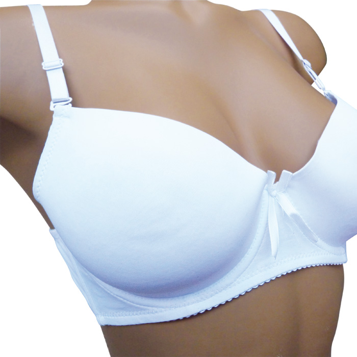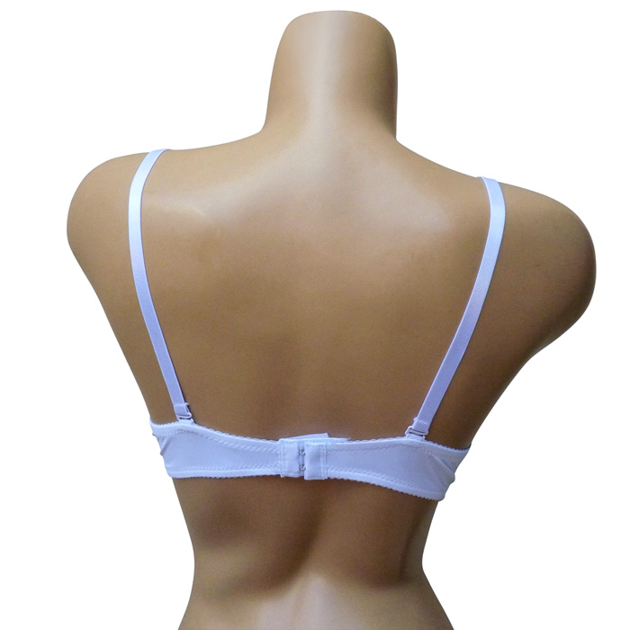 Soutien gorge rembourré avec armatures, coques souples bonnet lisse et uni. Rembourrage en forme de main. Bretelles réglables et amovibles. Bonnet B. Nœud satin entre bonnet. Fermeture dos 2 agrafes et 3 positions. 4 tailles.