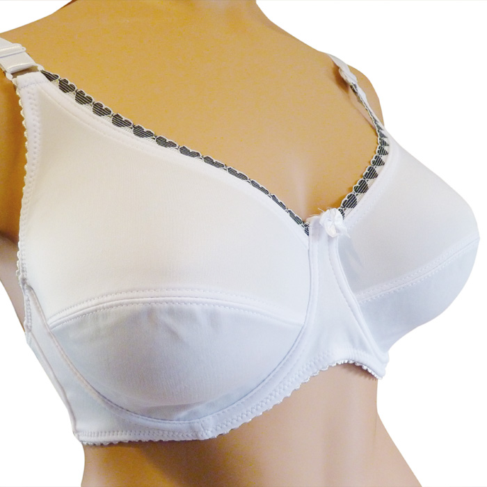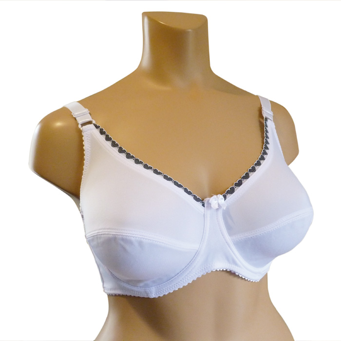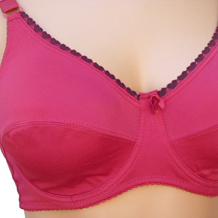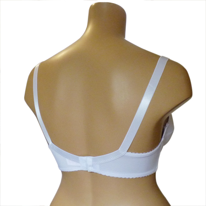 Soutien gorge grande taille, bonnet E. Soutien gorge avec armatures non rembourré. Petit "cœurs" contrastés sur la partie supérieure du bonnet. Couleur uni, brides montantes, réglables et non amovibles. 2 agrafes au dos avec 3 positions. 6 tailles : du 100E au 125E.