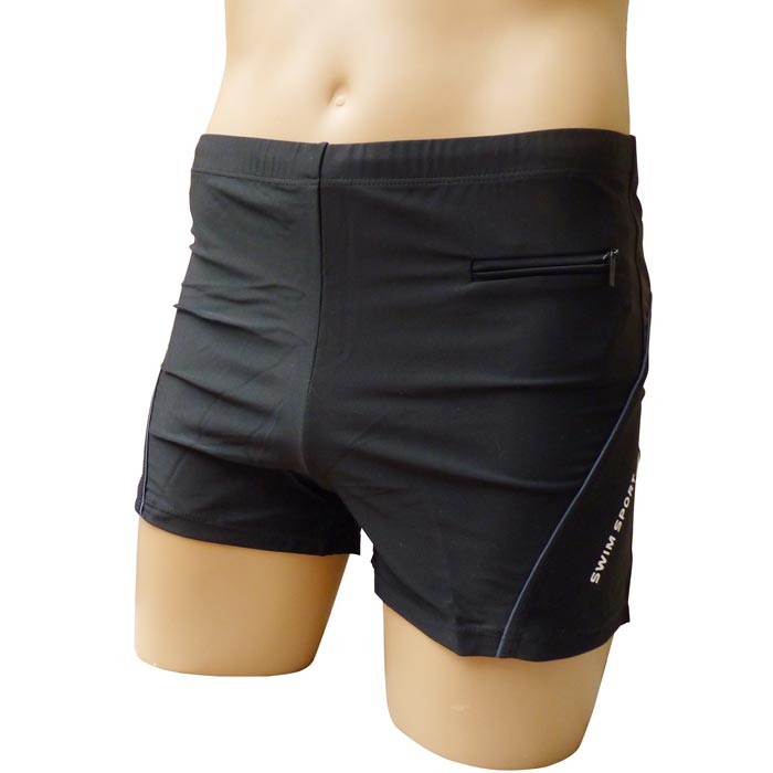 Boxer de bain homme, doublé d'un fin filet intérieur (en forme de slip). Lacet de resserrage à la taille. Fin liseré contrasté sur le derrière du boxer qui se termine sur les côtés avec inscription "swin sport". Petite poche zippée sur le côté à l'avant. RESTE 1 PIÈCE : Noir Taille XXL.