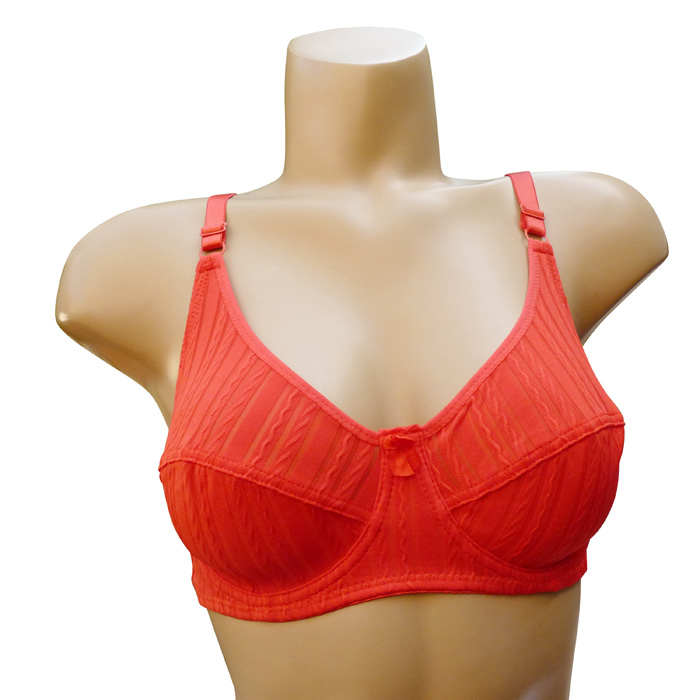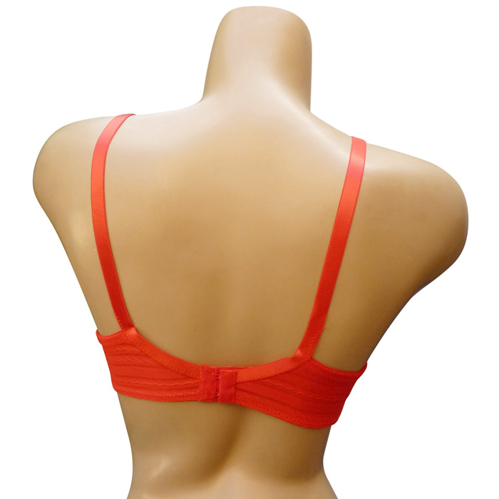 Soutien gorge grande taille, bonnet B. Soutien gorge avec armatures non rembourré. Soutien gorge uni avec bandes diagonales filet semi transparente sur la partie haute du bonnet. Brides montantes, réglables et non amovibles. 2 agrafes au dos avec 3 positions. 6 tailles : du 85B au 110B.