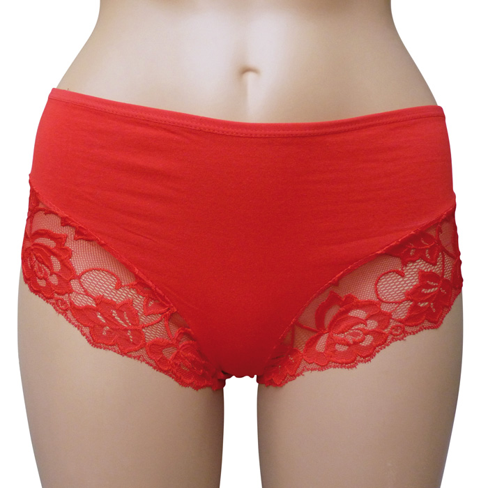 Culotte grande taille unie, coton majoritaire. Bande de dentelle stretch fleurie sur les bords des cuisses. 3 tailles : 2XL-3XL-4XL.