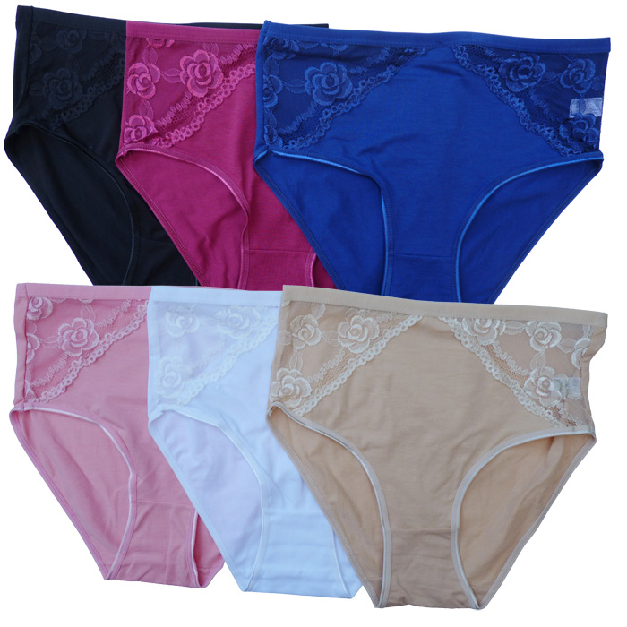 Culotte grande taille, coton majoritaire. 2 bandes de dentelle fleurie sur résille stretch sur les côtés. 4 tailles.