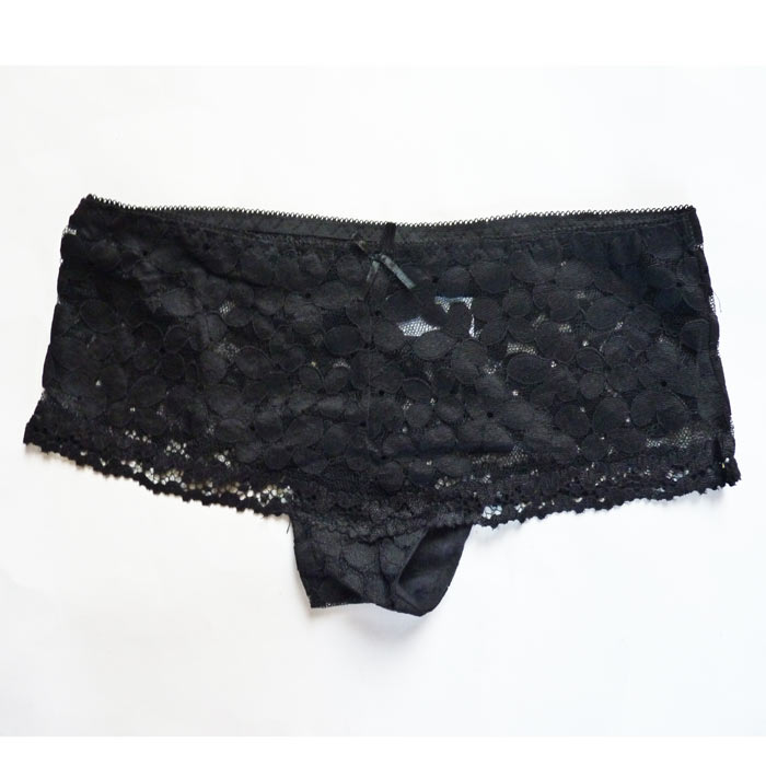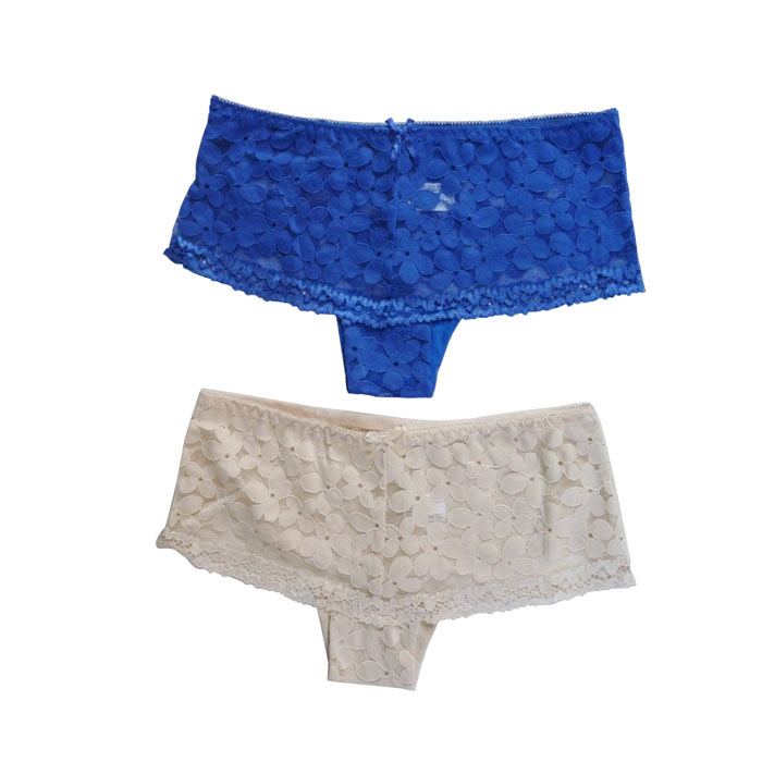 Boxer femme - Fleurs brodées sur maille résille stretch. Élastiquée à la taille. Doublé sur le fond. 2 tailles.
