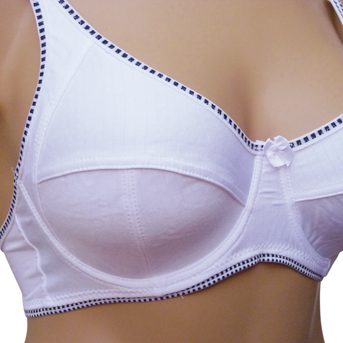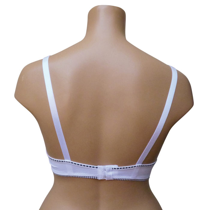 Soutien gorge grande taille avec armatures - Soutien gorge non rembourré. Tissu avec fines rayures verticales. Soutien gorge uni, liseré contrasté de petits carreaux noir sur le pourtour du soutien gorge. Nœud satiné entre bonnet. Brides réglables. Agrafes dans le dos. 6 tailles : 95D au 120D.