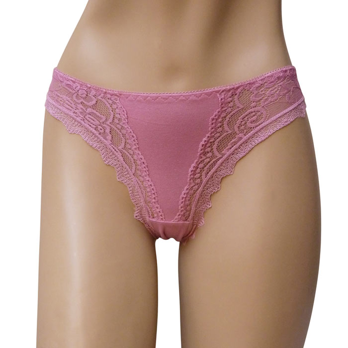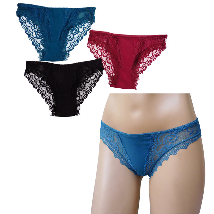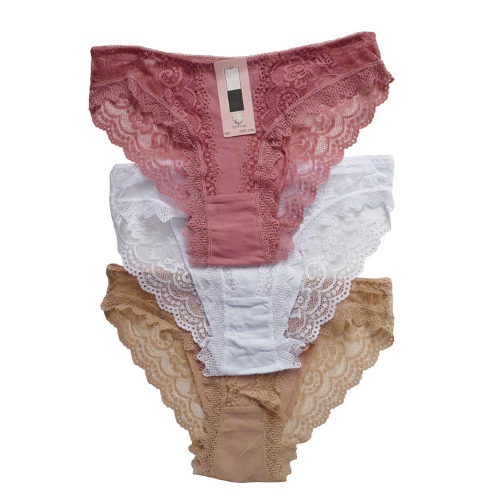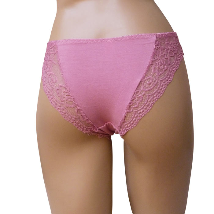 Culotte femme. Large bande dentelle sur le pourtour des cuisses. Taille élastiquée. Fond doublé. 2 Tailles : S/M et L-XL.