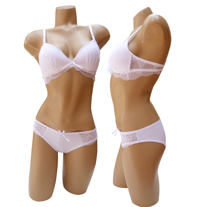 Ensemble soutien gorge avec slip. Soutien gorge sans armatures, bonnet B, soutien gorge triangle avec fleurs brodées sur maille filet stretch sur l'ensemble du bonnet. Soutien gorge orné de dentelle sous poitrine. Bretelles réglables et amovibles. Slip en lycra, dentelle fleurie sur les côtés. Livré sur cintre. 6 tailles : 80B au 105B.
