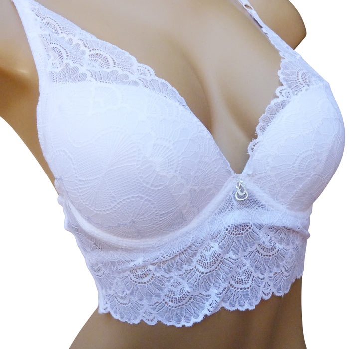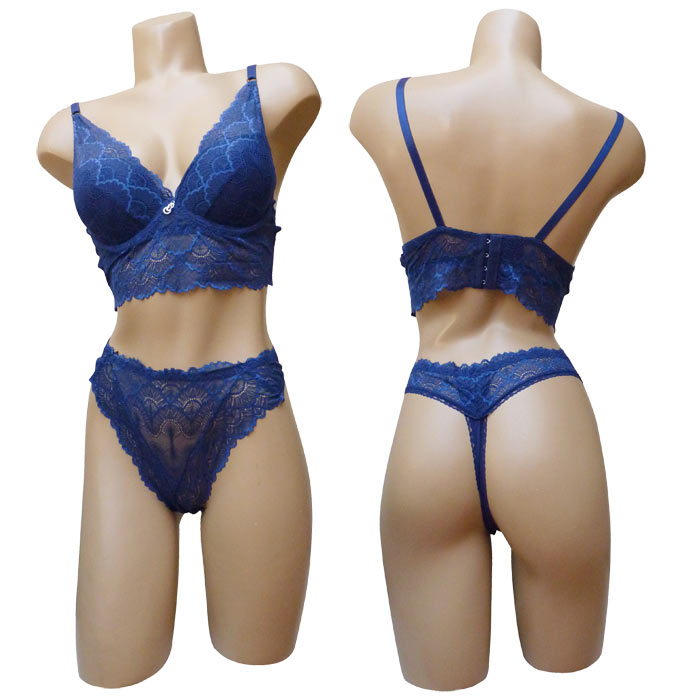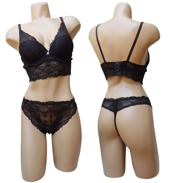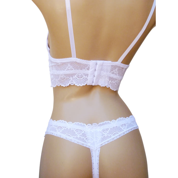 Ensemble soutien gorge avec tanga. Soutien gorge avec armatures, bonnet B, soutien gorge triangle rembourré. Fleurs brodées sur maille filet stretch sur l'ensemble du bonnet. Soutien gorge orné de dentelle sous poitrine. petit bijoux argenté entre-bonnet. Bretelles réglables et non amovibles. Fermeture dos 3 agrafes, triples positions. Tanga en dentelle. Livré sur cintre. 6 tailles : 80B au 105B.
