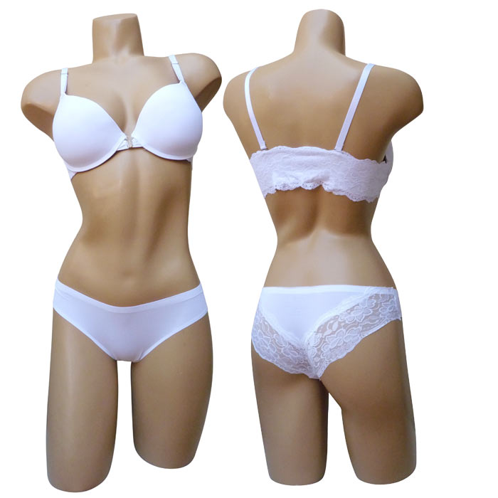 Ensemble soutien gorge avec slip, fermeture sur le devant. Soutien gorge avec armatures, bonnet B, soutien gorge uni, coques souples. Fleurs brodées sur maille filet stretch sur le pourtour. Bretelles réglables et amovibles. Slip uni en microfibre lycra sur le devant, dentelle fleurie sur les côtés à l'arrière. Livré sur cintre. 5 tailles : 75B au 95B.