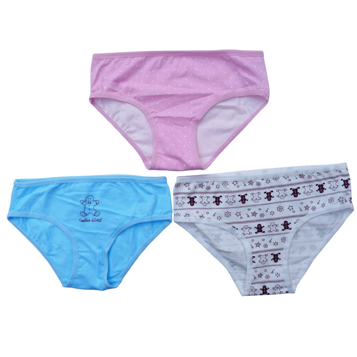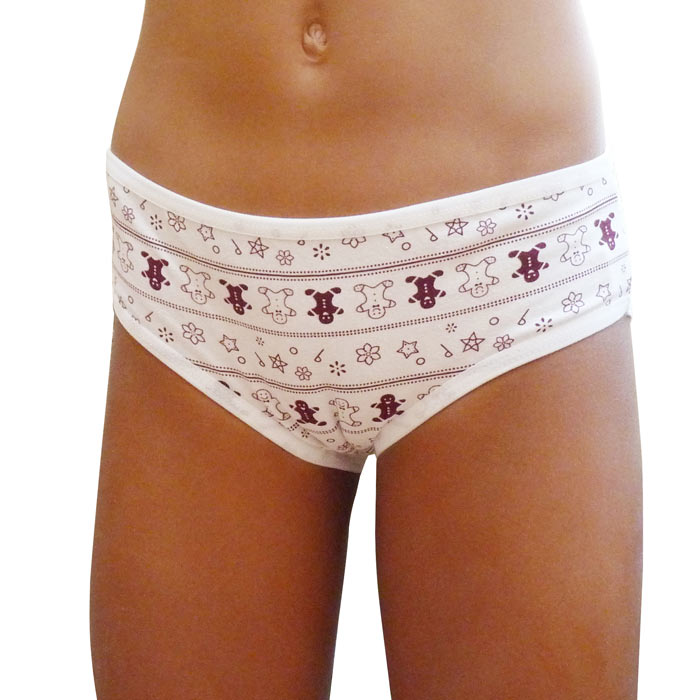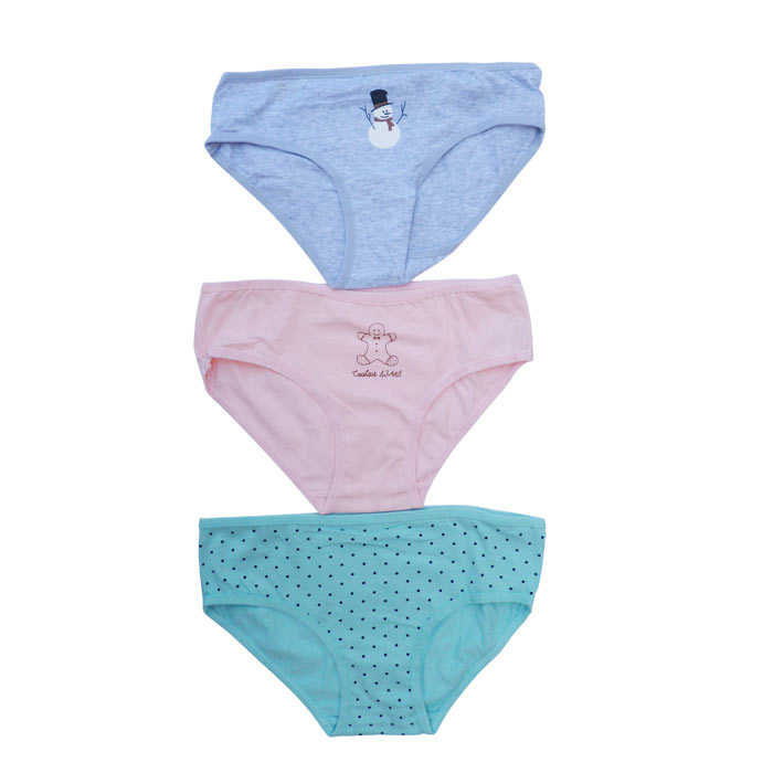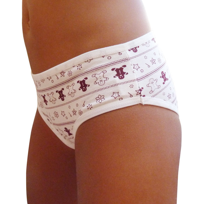 Slip fille coton majoritaire, avec motif "parapluie, ballon, texte en anglais...etc" et imprimé "pois, bonhomme de neige, etc..." . 4 tailles : 2/4ans, 5/7ans, 8/10 ans, 11/12 ans.