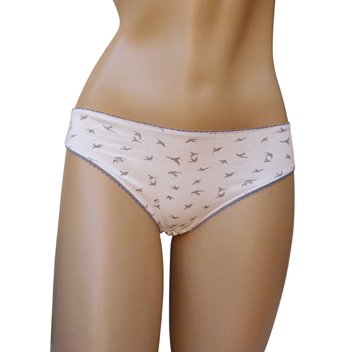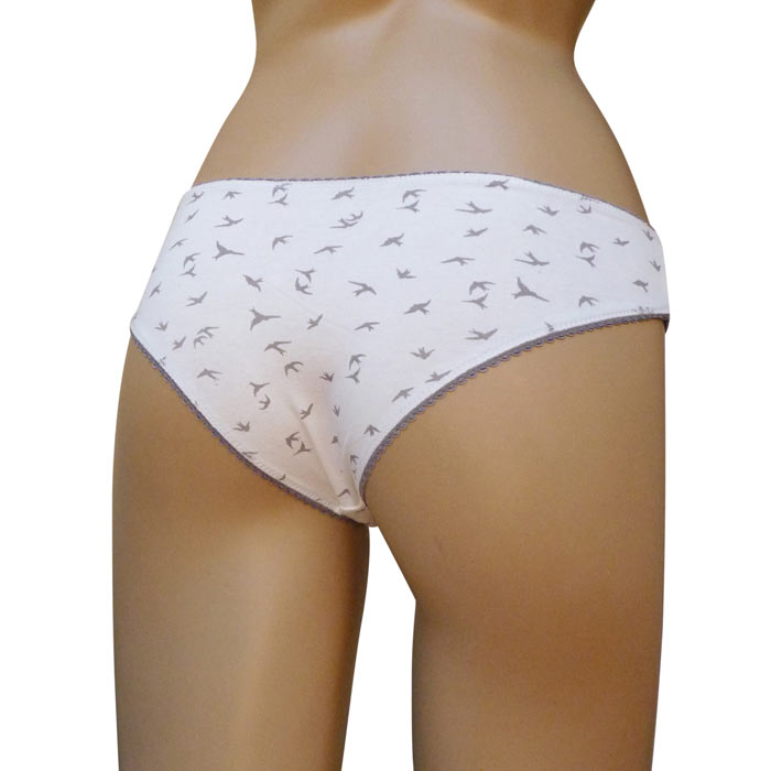 Slip femme coton majoritaire, Imprimé oiseaux "hirondelles" sur fond uni. Fond doublé. 4 Tailles.