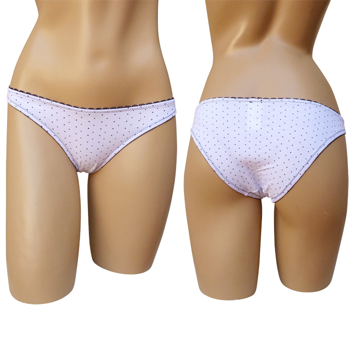 Slip femme coton majoritaire uni et Dentelé sur le pourtour de la taille.plusieurs types d'imprimé Doublé sur le fond de la culotte. 3 tailles.