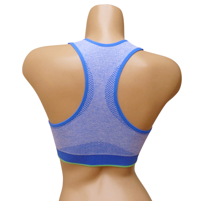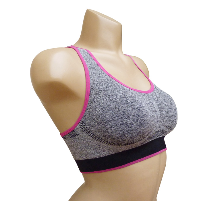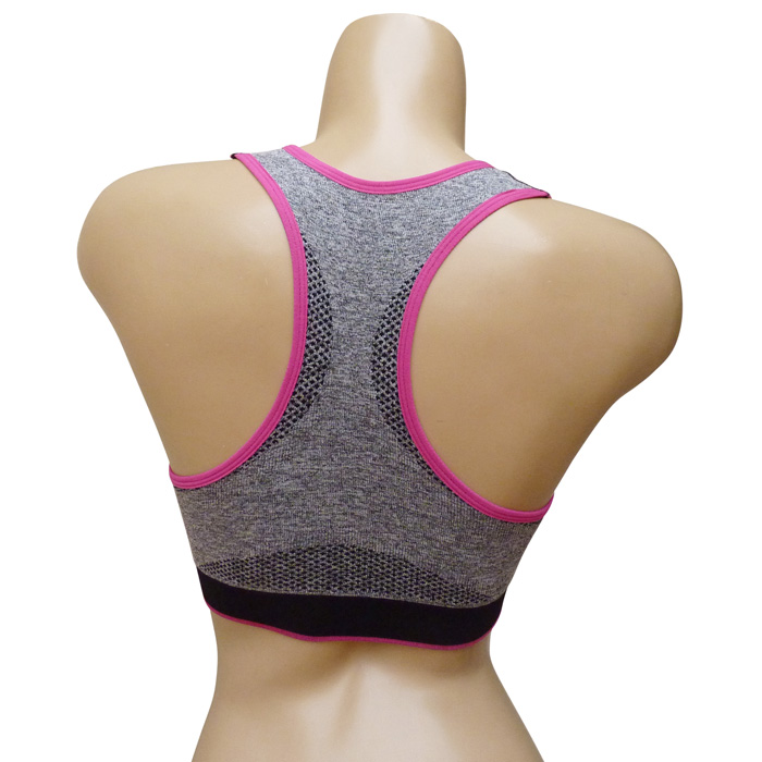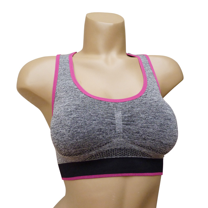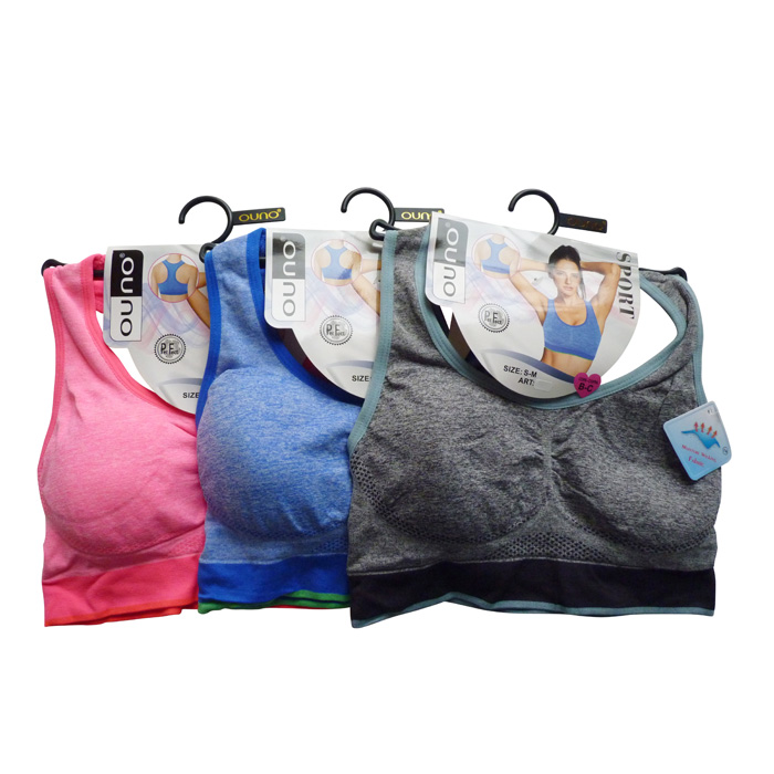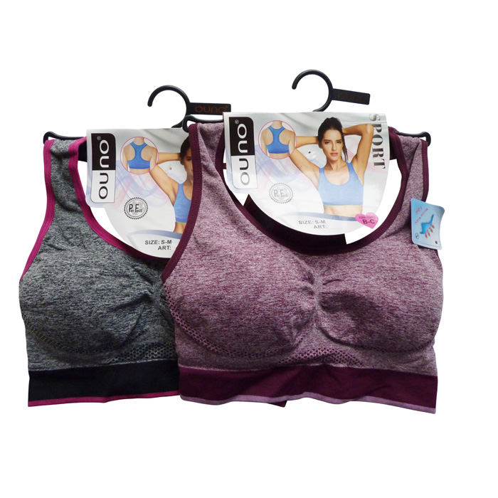 Brassière sport, Look sportif - Large bande stretch sous poitrine. Bonnets sans armatures avec coussinets amovibles. Brassière unie, contour contrasté. Larges brides montantes sur épaules. Dos nageur. 5 coloris dans le paquet. 2 tailles : S/M et L/XL.