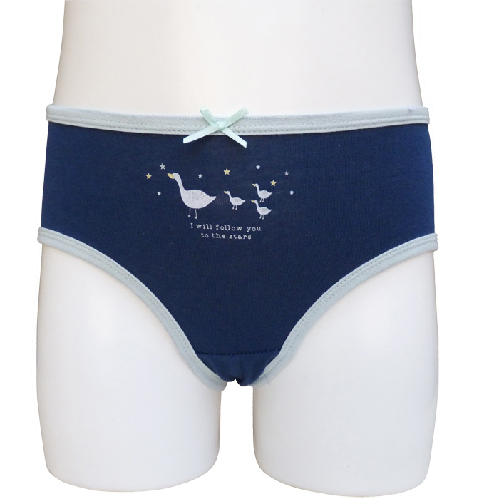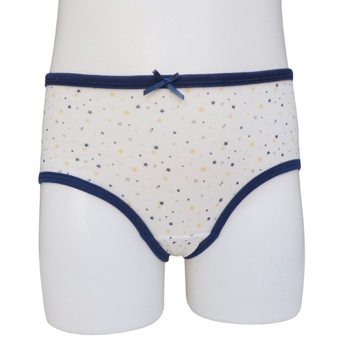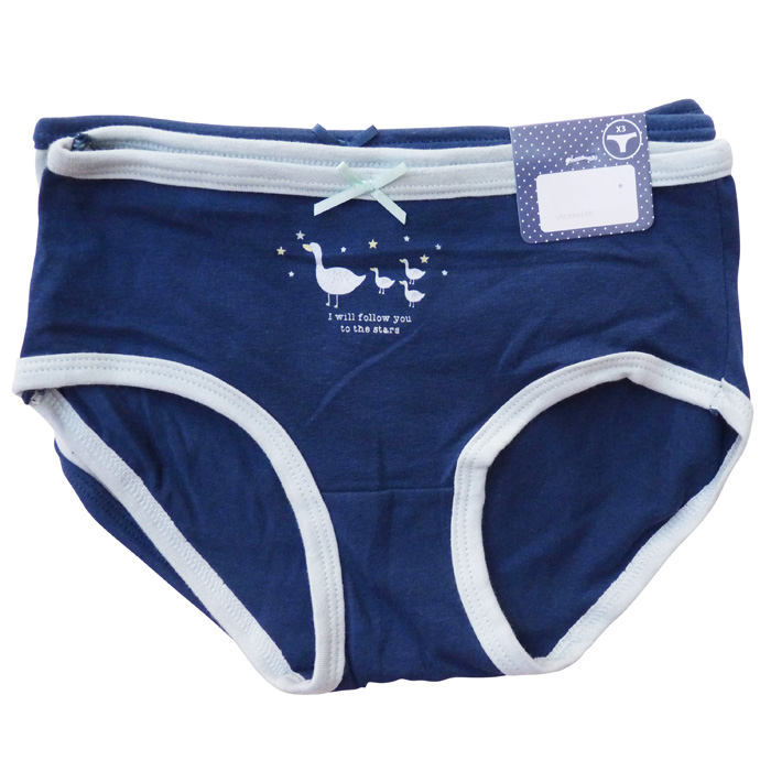 Slip fille confortable, coton majoritaire sur fond uni motifs "canards, étoiles..." ou uni. liseré contrasté sur le pourtour de la taille et des cuisses. Culotte élastiquée à la taille. 3 coloris différents et 3 tailles : 1/2 ans, 3/4 ans, 5/6 ans.