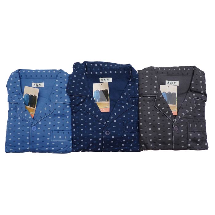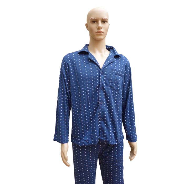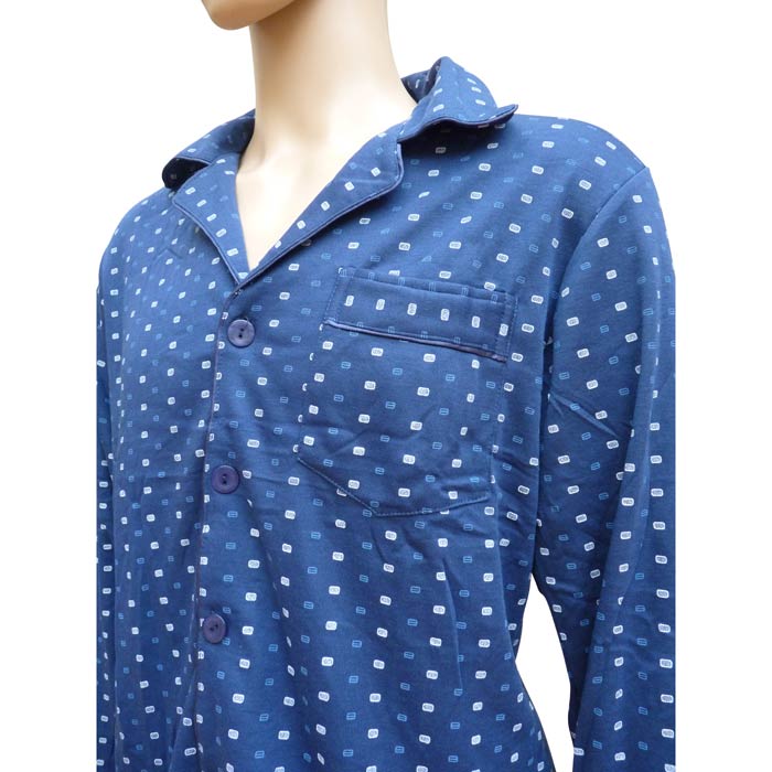 Pyjama homme, moelleux, doux et confortable en jersey de coton intérieur pilou- Veste entièrement boutonnée, poche poitrine, motif graphique sur fond uni. Pantalon avec rappel motif. Taille élastiquée. 5 tailles= M-L-XL-XXL-XXXL.