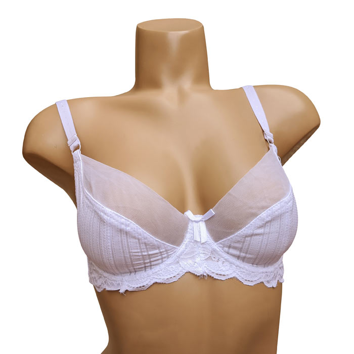 Soutien gorge grande taille, Bonnet C non rembourrés avec armatures. Tulle sur la partie supérieure du bonnet. Partie inférieure pleine. Dentelé sur la partie basse du bonnet à l'avant. Brides réglables, non amovibles. Fermeture dos 2 agrafes et 3 positions d'accroches. 6 tailles : de 85C à 110C.