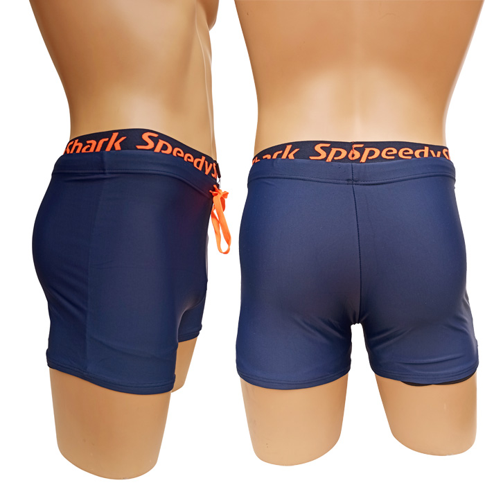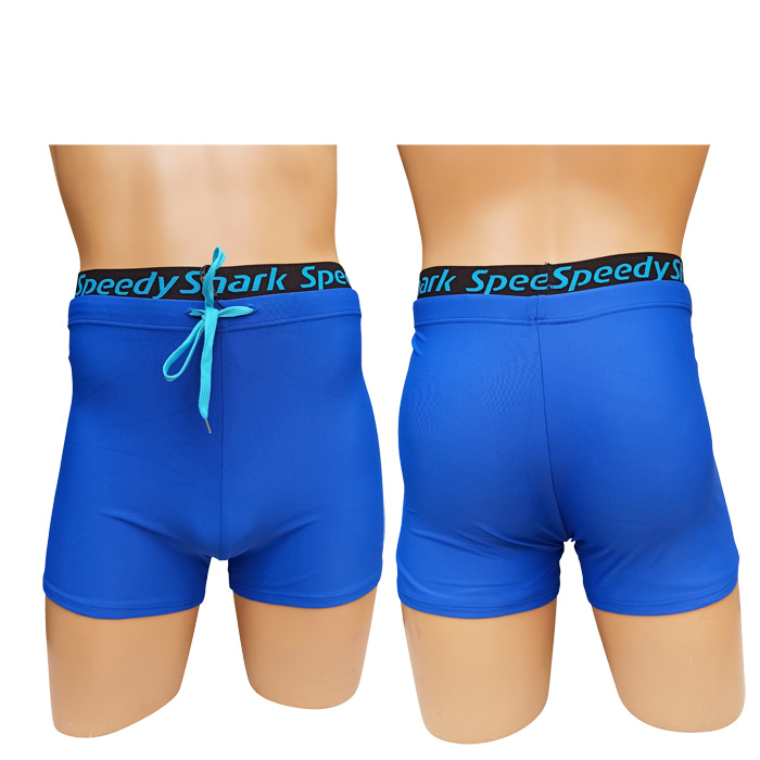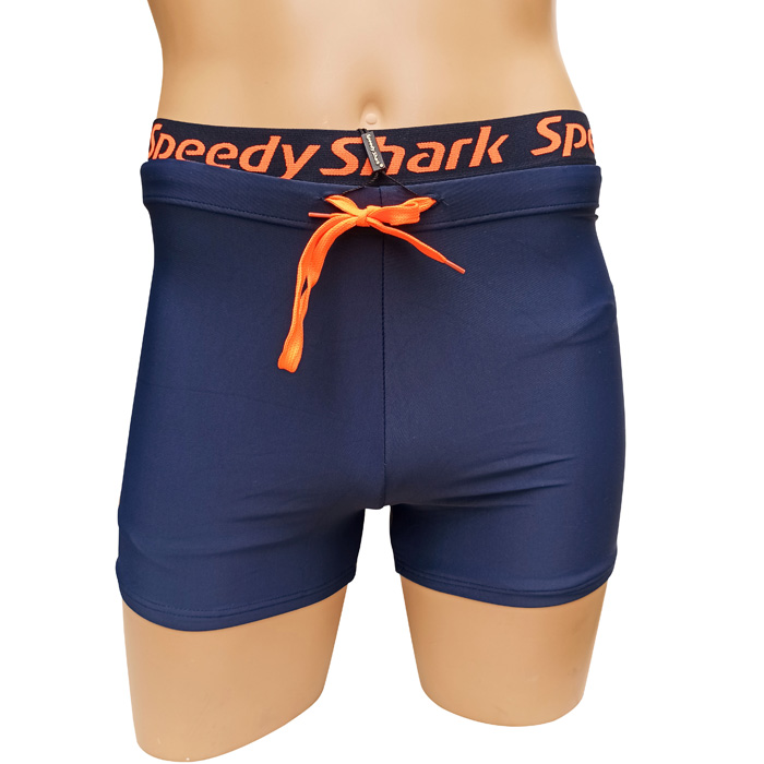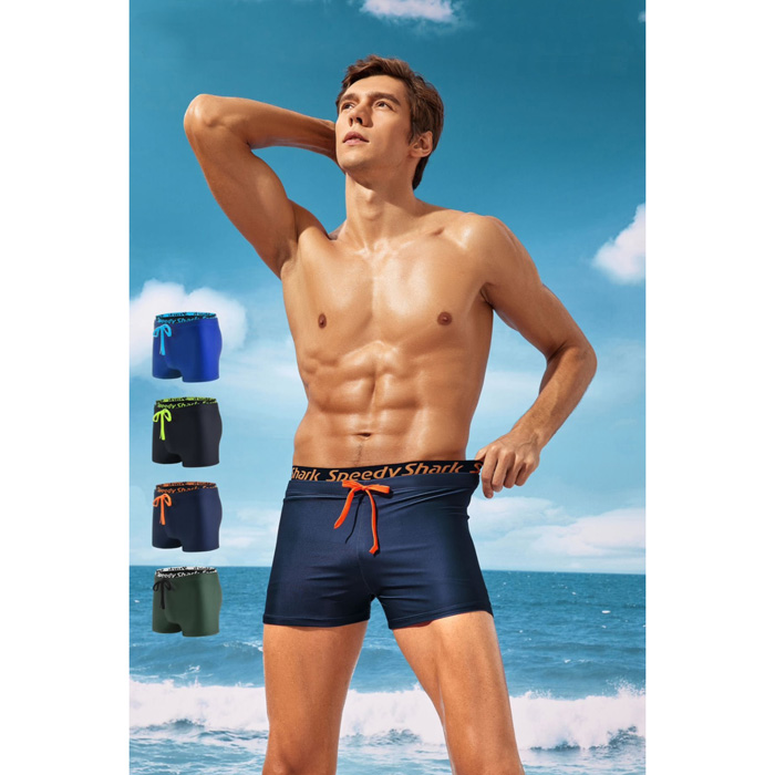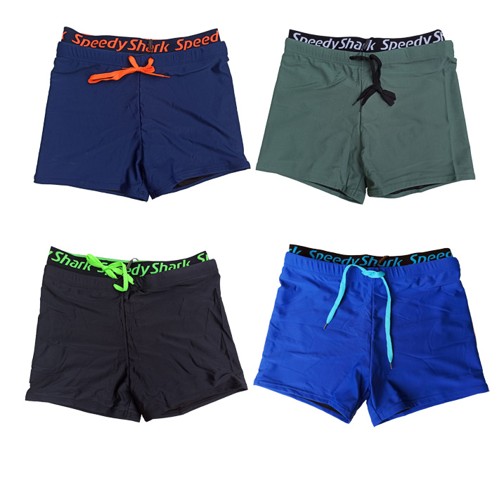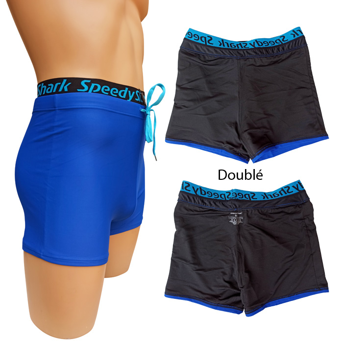 Boxer de bain homme, entièrement doublé. Taille élastiquée avec inscription "Speedy Shark". Lacet de de resserrage coloré à la taille. Boxer entièrement uni. 5 tailles de 36/38 à 44/46.