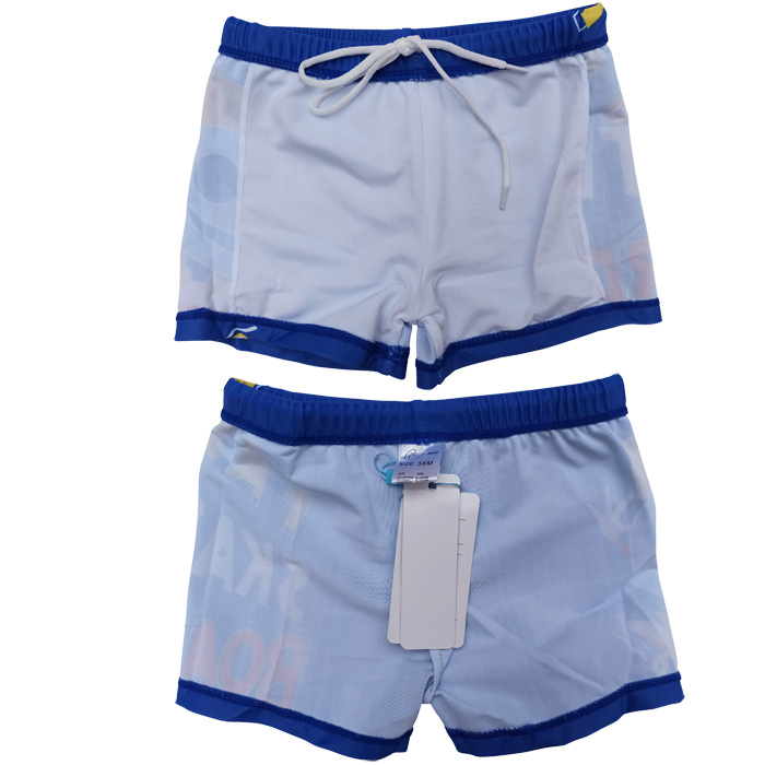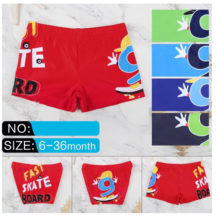 Boxer de bain garçon de 6 à 36 mois. Motifs "surf" sur les boxers déclinés en plusieurs coloris. Boxers doublés à l'avant avec lacet de resserrage à la taille. 6 tailles : 6 mois, 12 mois, 18 mois, 24 mois, 30 mois, 36 mois.
