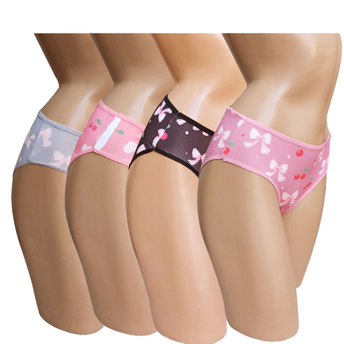 Slip femme, coton majoritaire. Motif graphique sur l'ensemble, 6 coloris différents dans le paquet. Taille élastiquée. Fond doublé. 2 Tailles.