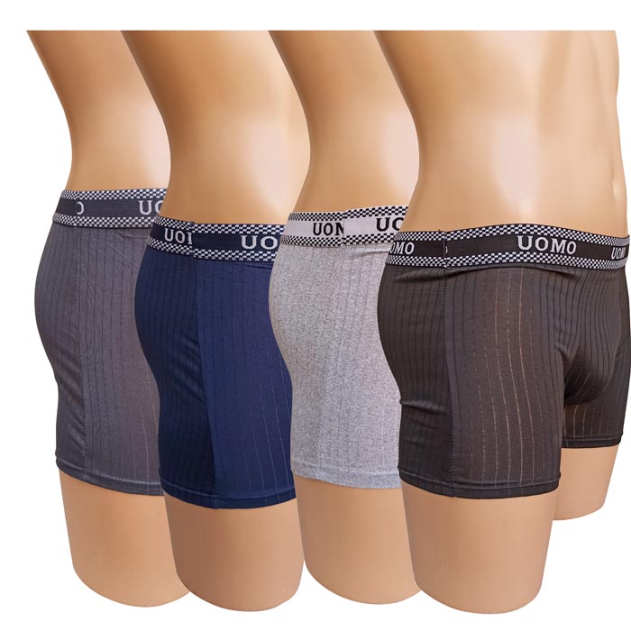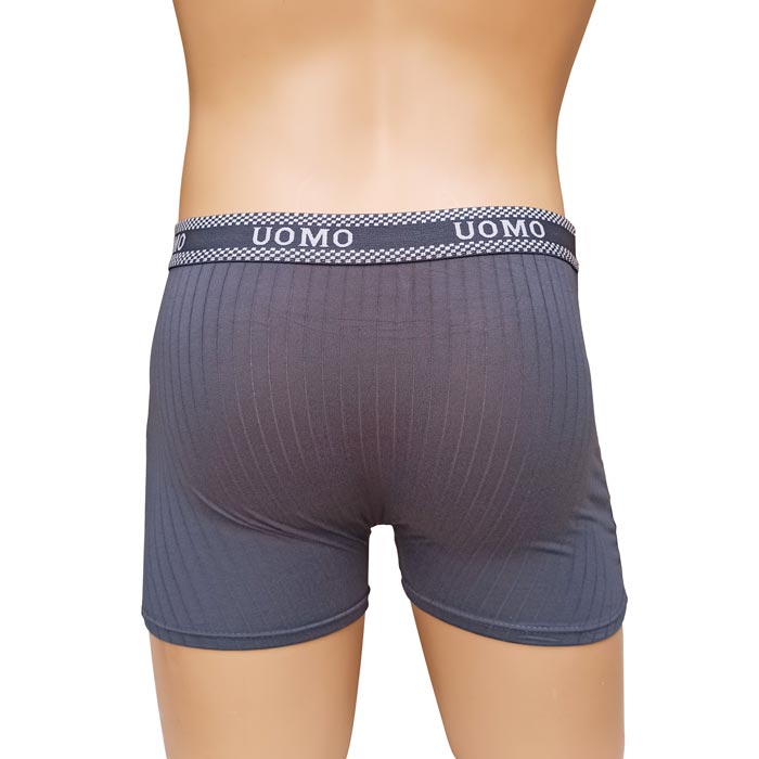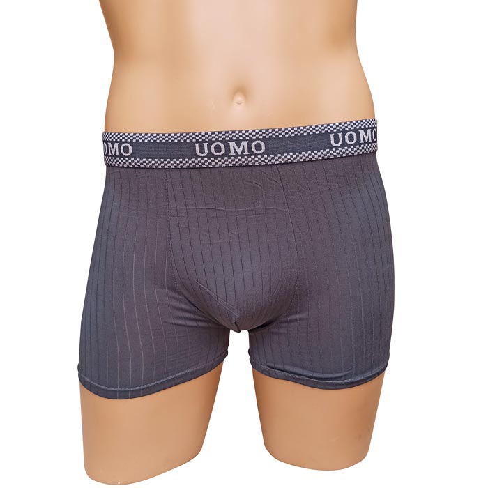 Boxer homme coton majoritaire, partie avant doublée.Boxer entièrement uni, ceinture élastiquée à la taille avec inscription "UOMO". 5 tailles indiquées sur étiquettes : M-L-XL-2XL-3XL. Attention la taille M sur ce modèle correspond à une taille 36.