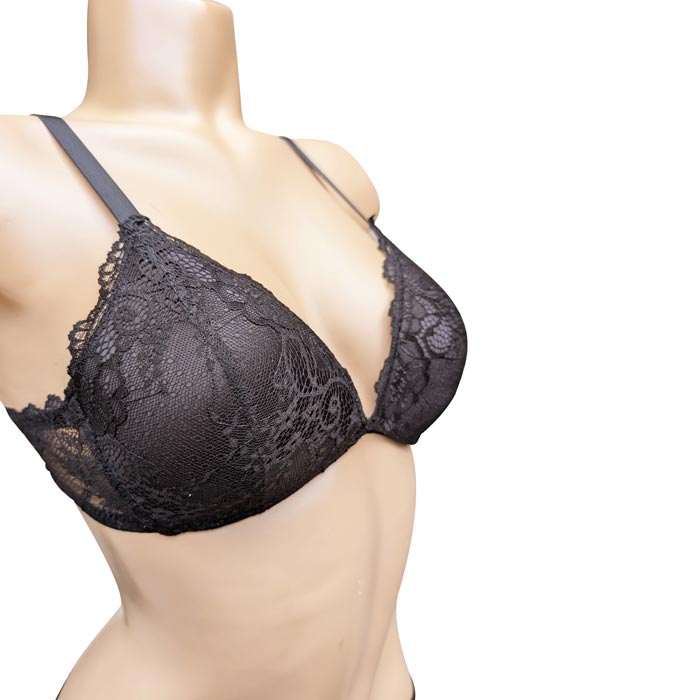 Ensemble soutien-gorge forme triangle, bonnet C, soutien gorge coques souples, sans armatures sans armatures. Soutien gorge dentelle "fleurs" sur maille résille stretch sur l'ensemble du bonnet. Nœud satin entre-bonnet. Dos fermeture 2 agrafes 3 positions d'accroches. Bretelles réglables et non amovibles. Brésilien microfibre devant et dentelle sur le derrière. Livré sur cintre. 5 Tailles : 85C à 105C dont 90C, 95C et 100C en double.