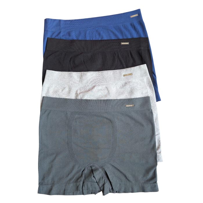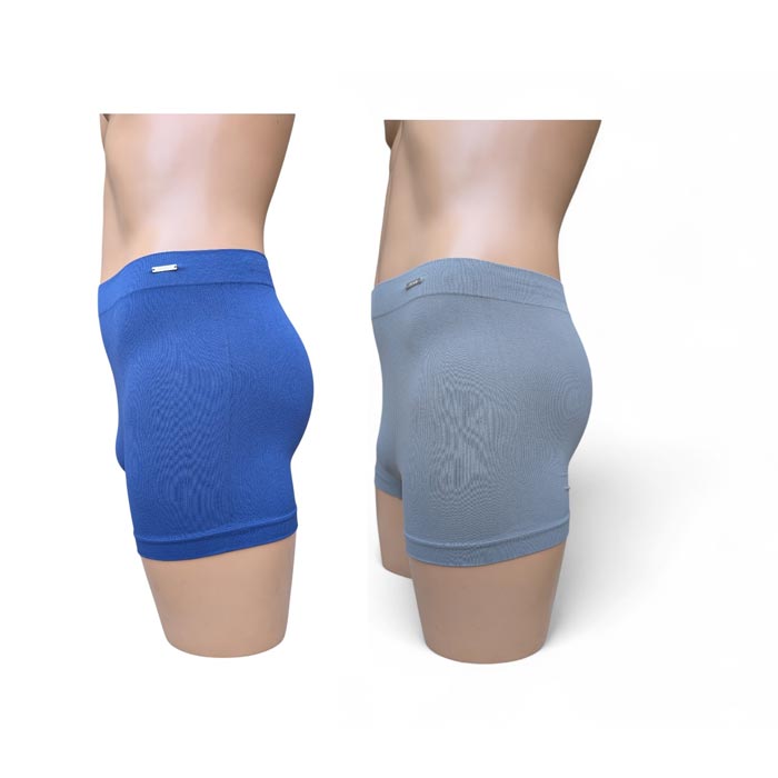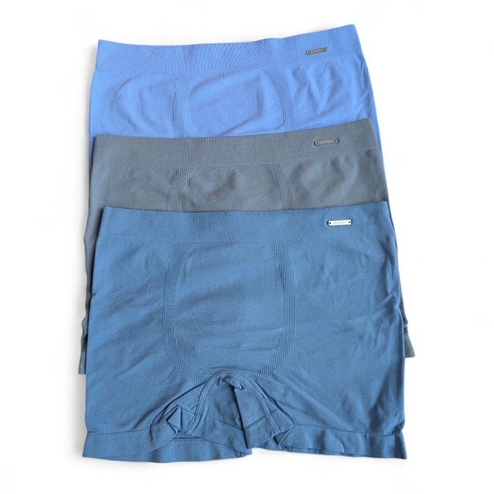 Boxer homme entièrement uni. Ceinture élastiquée. Boxer très extensible Camaïeu de bleu, noir et gris clair. 2 tailles sont indiquées. : M/L et XL/2XL.