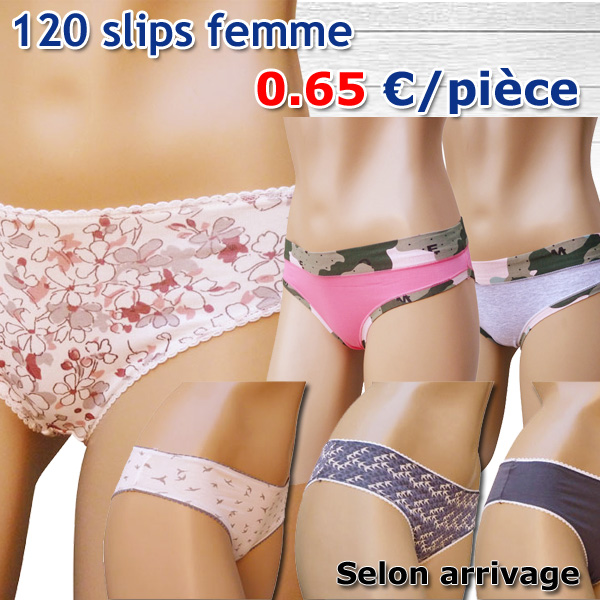 Pack de 120 Slips femme. Nouveautés permanentes multiples, modèles différents suivant arrivage.