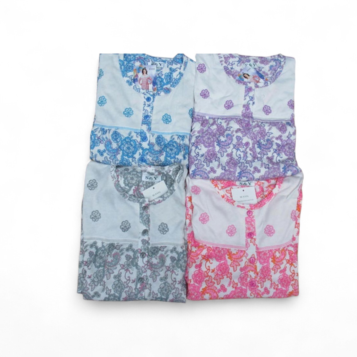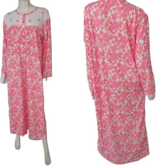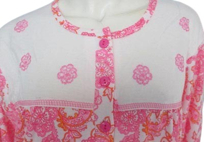 chemise de nuit longue, intérieur flanelle pilou- col rond boutonné, empiècement poitrine fleurs brodées- 4 tailles (3 M, 1 XL, 1 XXL)