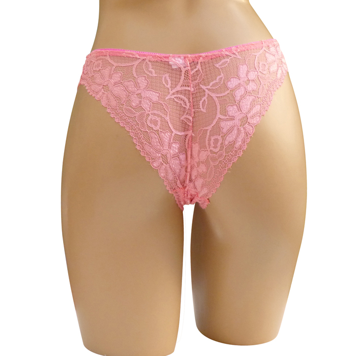 Slip brésilien brodé de fleurs nacrées - Au niveau de la taille ceinture contrastée. Extensible. 2 tailles : S-M, L,XL.