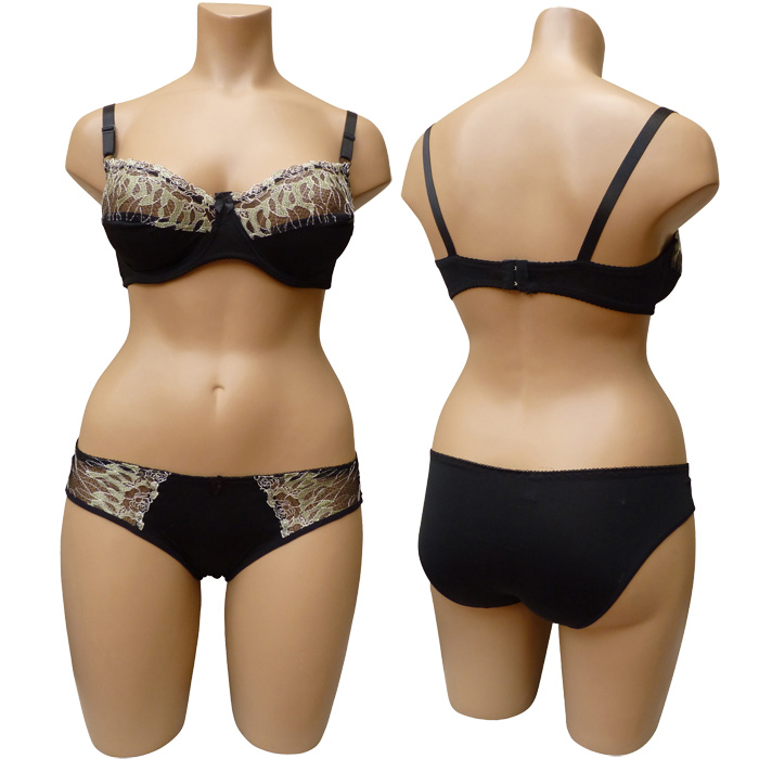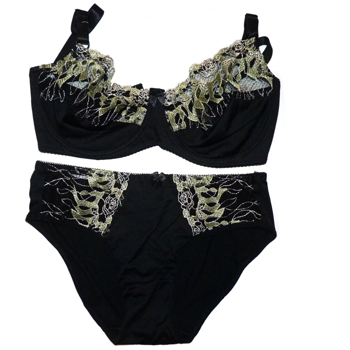 Ensemble soutien gorge slip - soutien gorge non rembourré avec armatures-- fleurs brodées sur la partie haute du bonnet- slip , 2 triangles de fleurs sur les côtés- Tailles restantes : 95E, 100E, 110E, 115E, 120E.