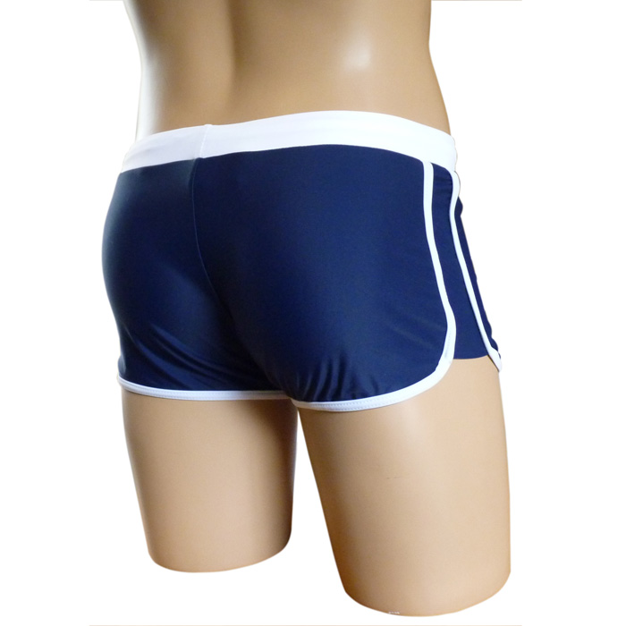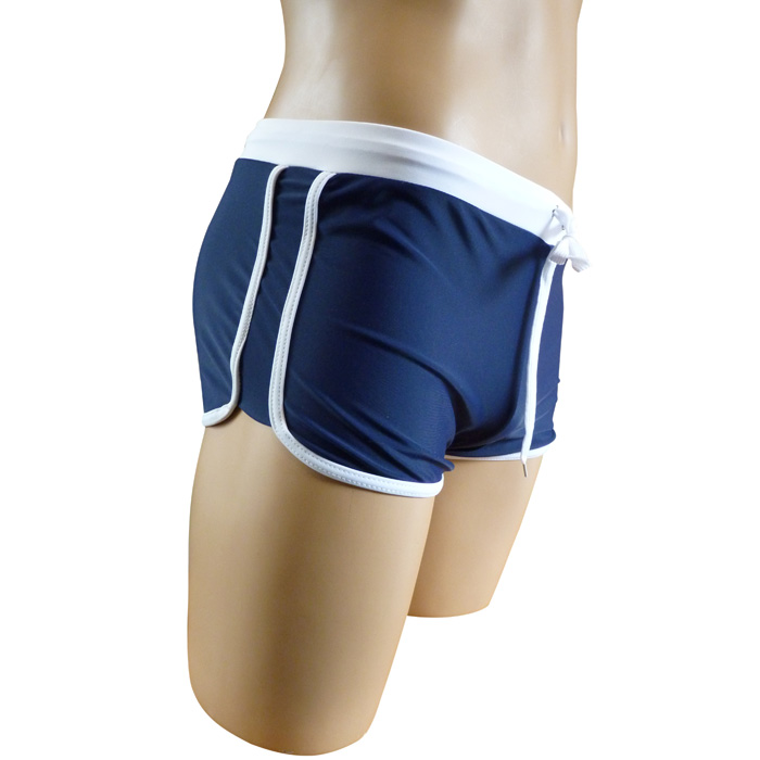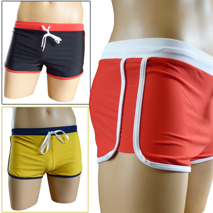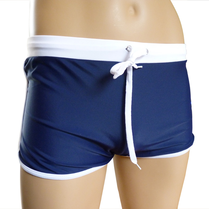 Short de bain court avec ourlets contrastés. Boxer de bain taille petit. Cordons de resserrage permettant d'ajuster la taille élastique. Intérieur doublé devant et derrière. 6 tailles : du S au 3XL.