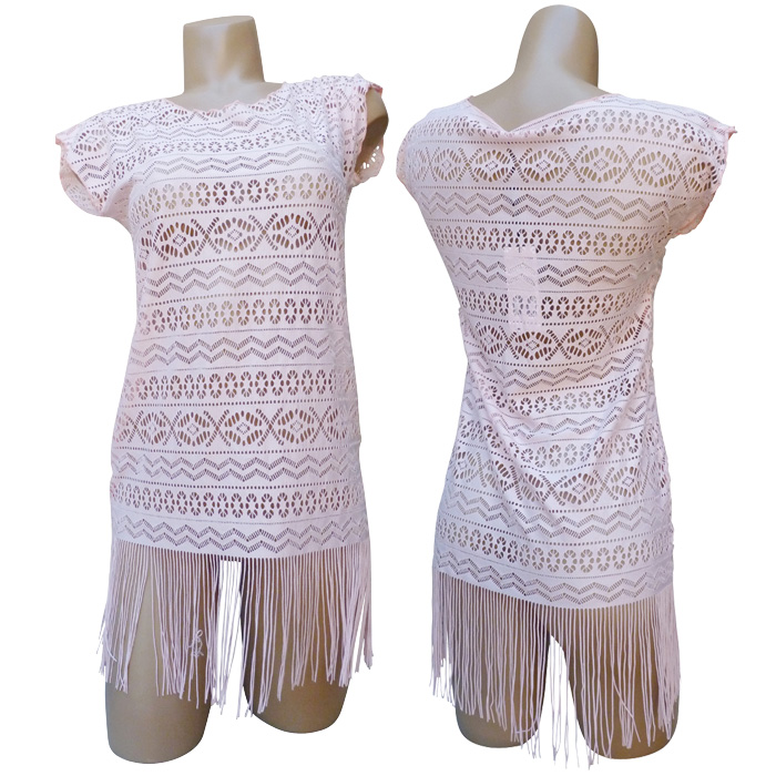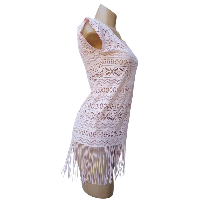 Tunique de plage, s'enfile comme un t-shirt. Tunique sans manche terminé par des franges sur le bas. 6 coloris différents et 3 tailles (M - L - XL).