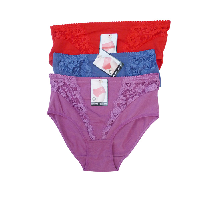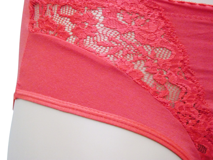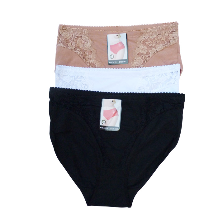 Culotte grande taille, coton majoritaire. Culotte entièrement unie avec triangle de dentelle sur maille résille stretch sur les côtés. 4 tailles.