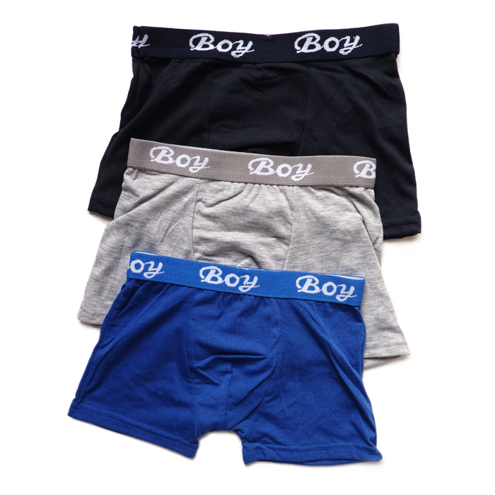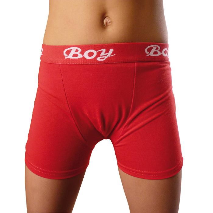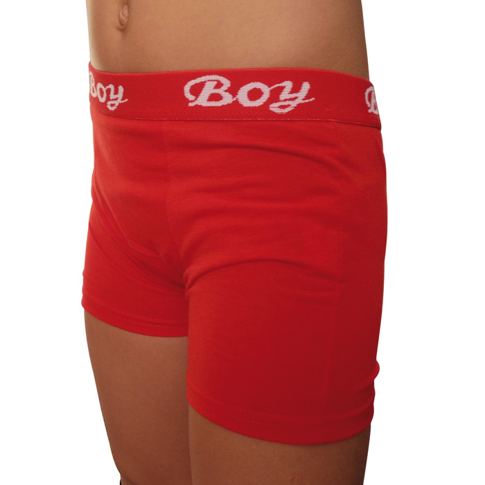 Boxer garçon coton majoritaire, partie avant doublée. Boxer entièrement uni. Ceinture taille gomme avec inscription "Boy" sur le pourtour. 4 tailles : 2/4ans, 6/8ans, 10/12 ans, 14-16 ans