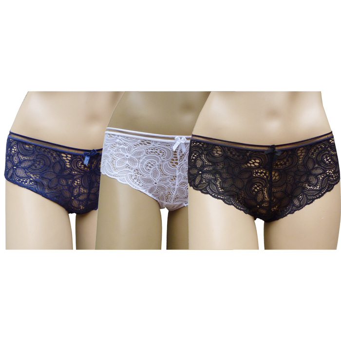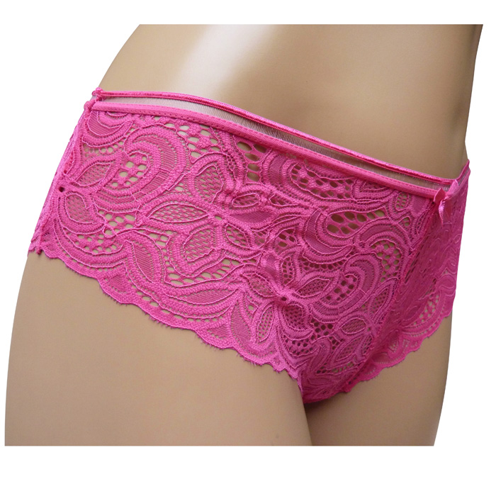 Boxer femme - Fleurs brodées sur maille résille stretch. Élastiquée à la taille. 2 tailles : S/M et L/XL.