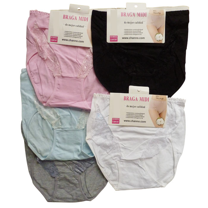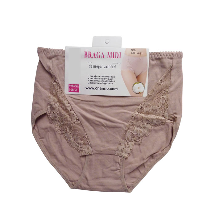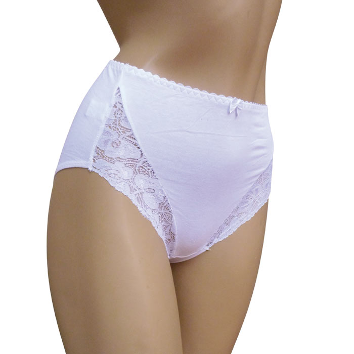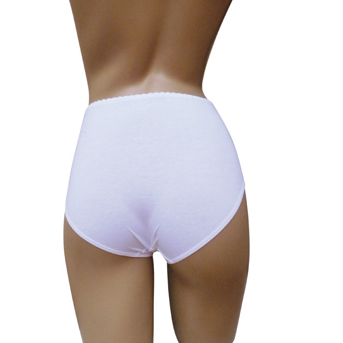 Culotte grande taille unie, coton majoritaire. "Fleurs" brodées nacrées sur maille résille stretch sur les bords des cuisses. Ne marque pas et confortable. Fond de la culotte doublé. Petit nœud papillon sur le devant 3 tailles : L-XL-2XL.