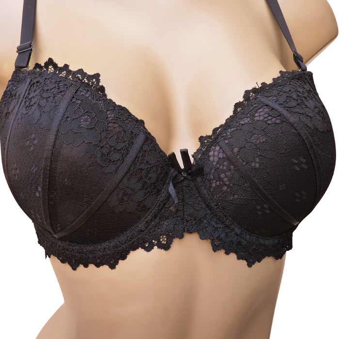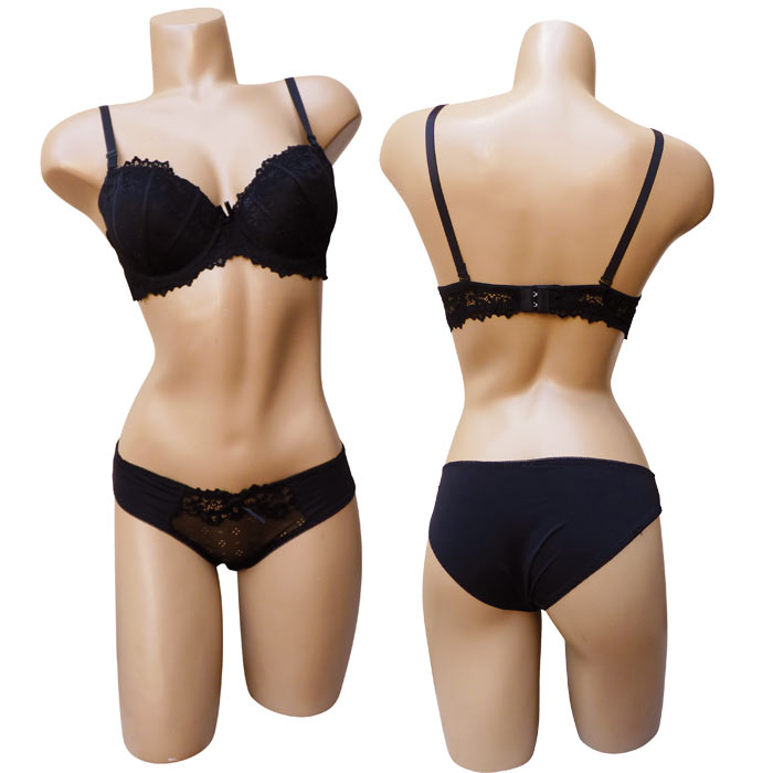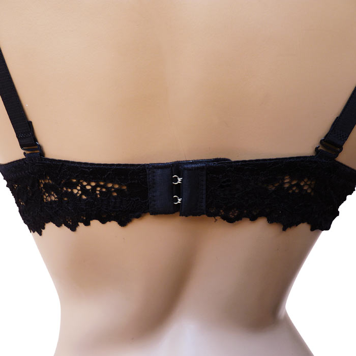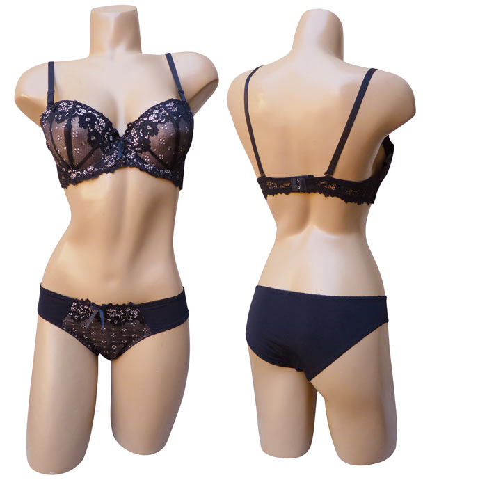 Ensemble soutien gorge, Bonnet B. Soutien gorge, coques souples rembourrés avec armatures. Soutien gorge recouvert dentelle motif "fleurs" sur maille résille stretch. dentelé sur le haut et le bas du bonnet. Bretelles réglables et amovibles. 5 tailles.
