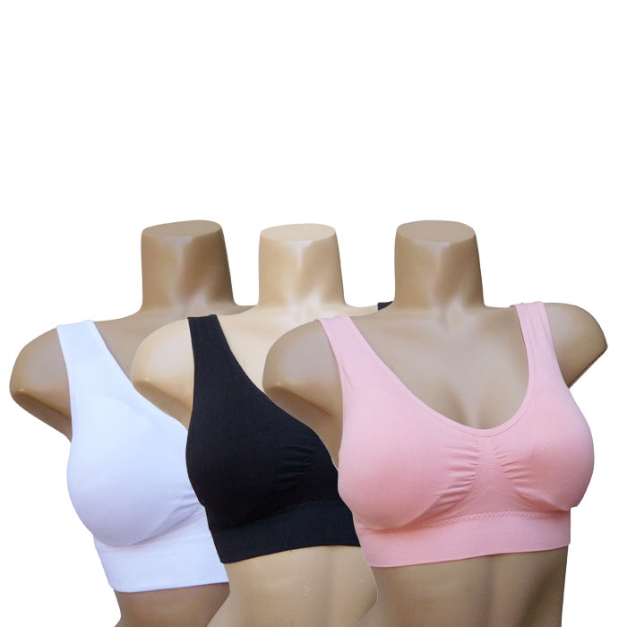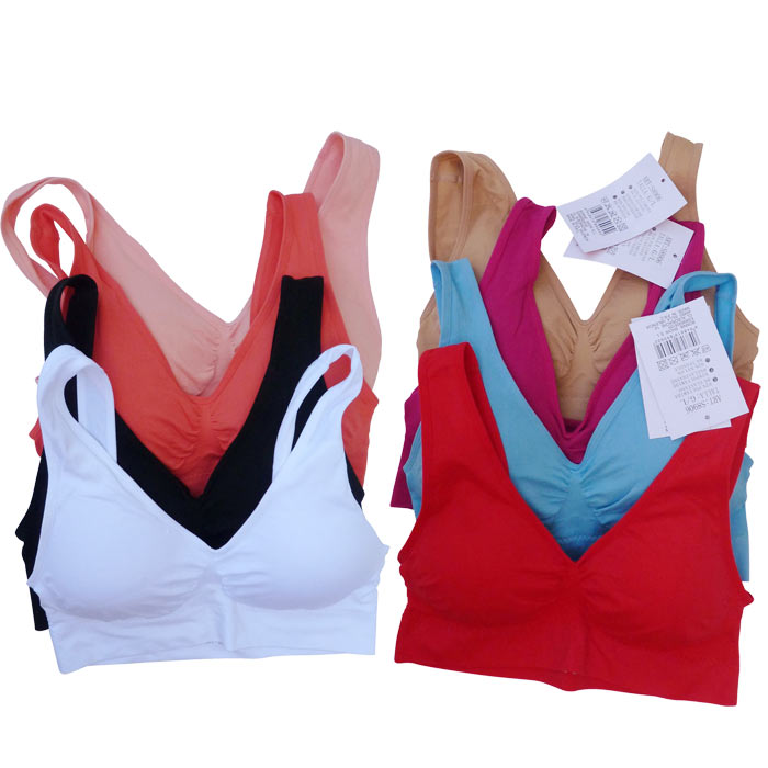 Brassière, maintien optimum ,large bande stretch sous poitrine, matière microfibre lycra,très confortable, douceur extrême bonnets moulés sans armatures avec coussinets amovibles. Larges brides montantes sur épaules. Fronces entre bonnets. 1 taille dans le paquet M/M