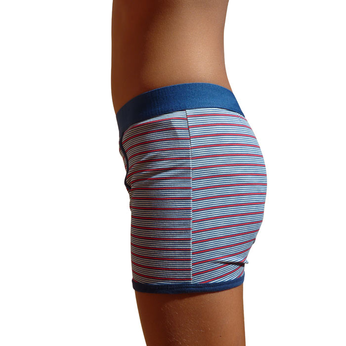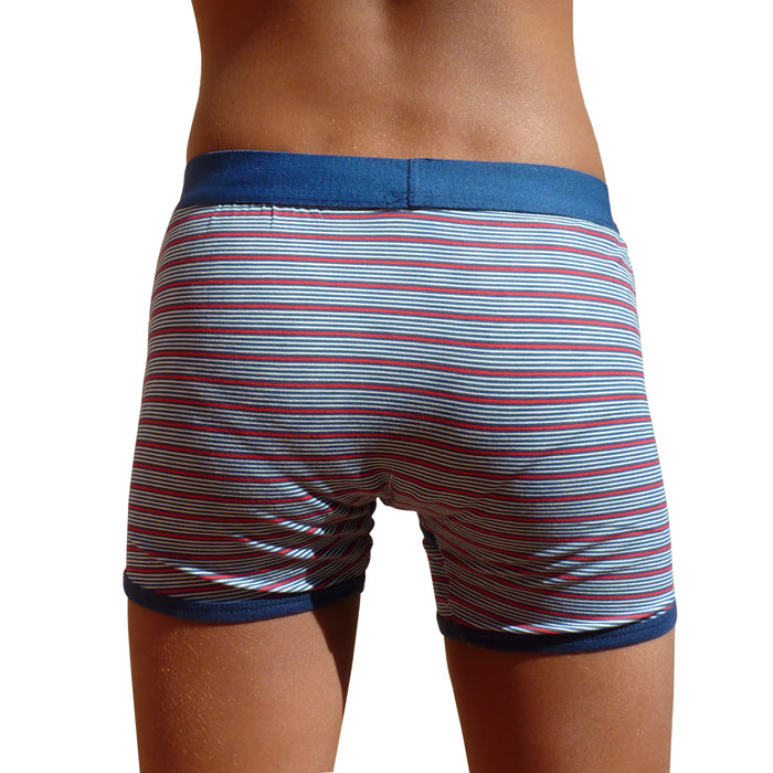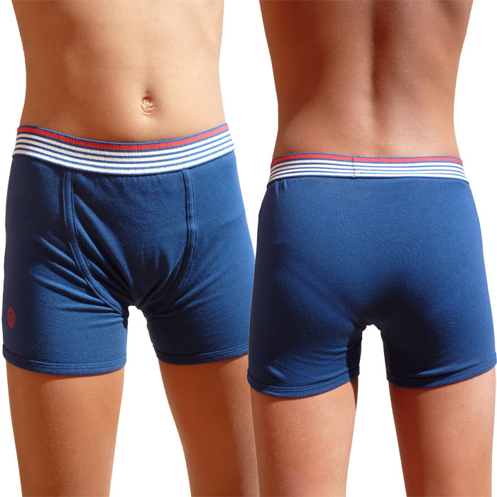 Boxer garçon, coton majoritaire, imprimé multi-rayures, ceinture élastiquée, uni et avec rayures. Doublé sur le devant. 4 tailles : 6/8 ans - 8/10 ans - 10/12 ans - 12/14 ans.